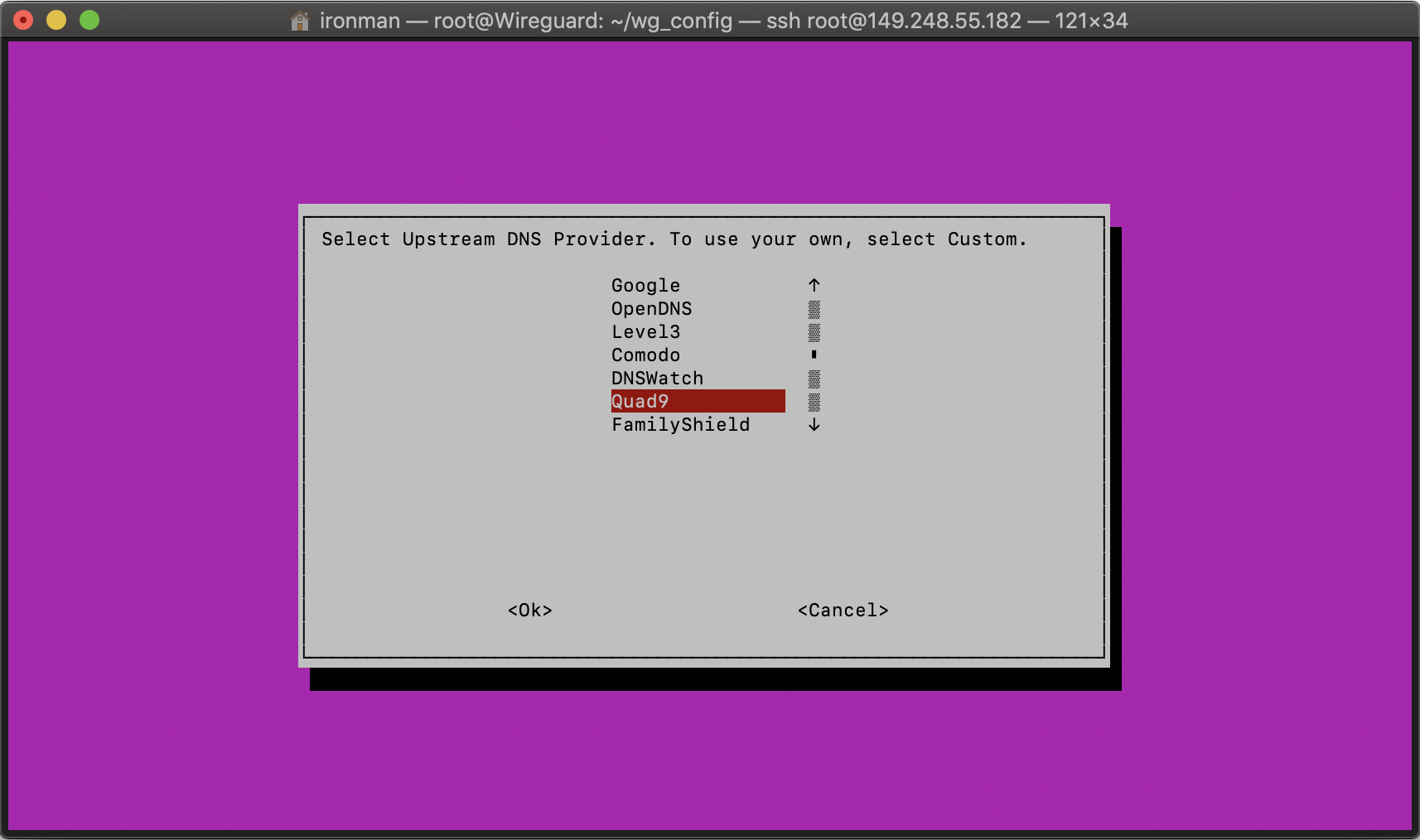 Select the upstream DNS provider of your choice (I like Quad9 for their ability to block malicious activity and domains). Click OK: